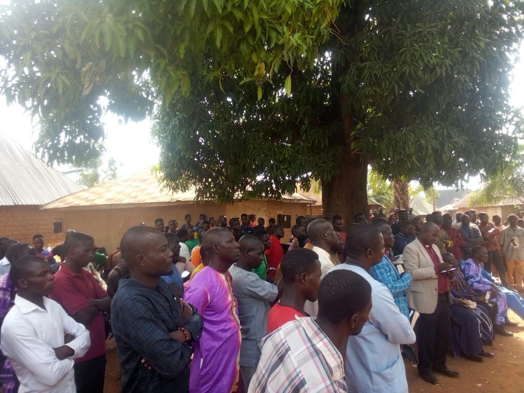 A community funeral service held on Palm Sunday for victims of the March 28, 2026 attack at Kahir, Kagarko LGA, Kaduna State. Photo credit: CHAIN
